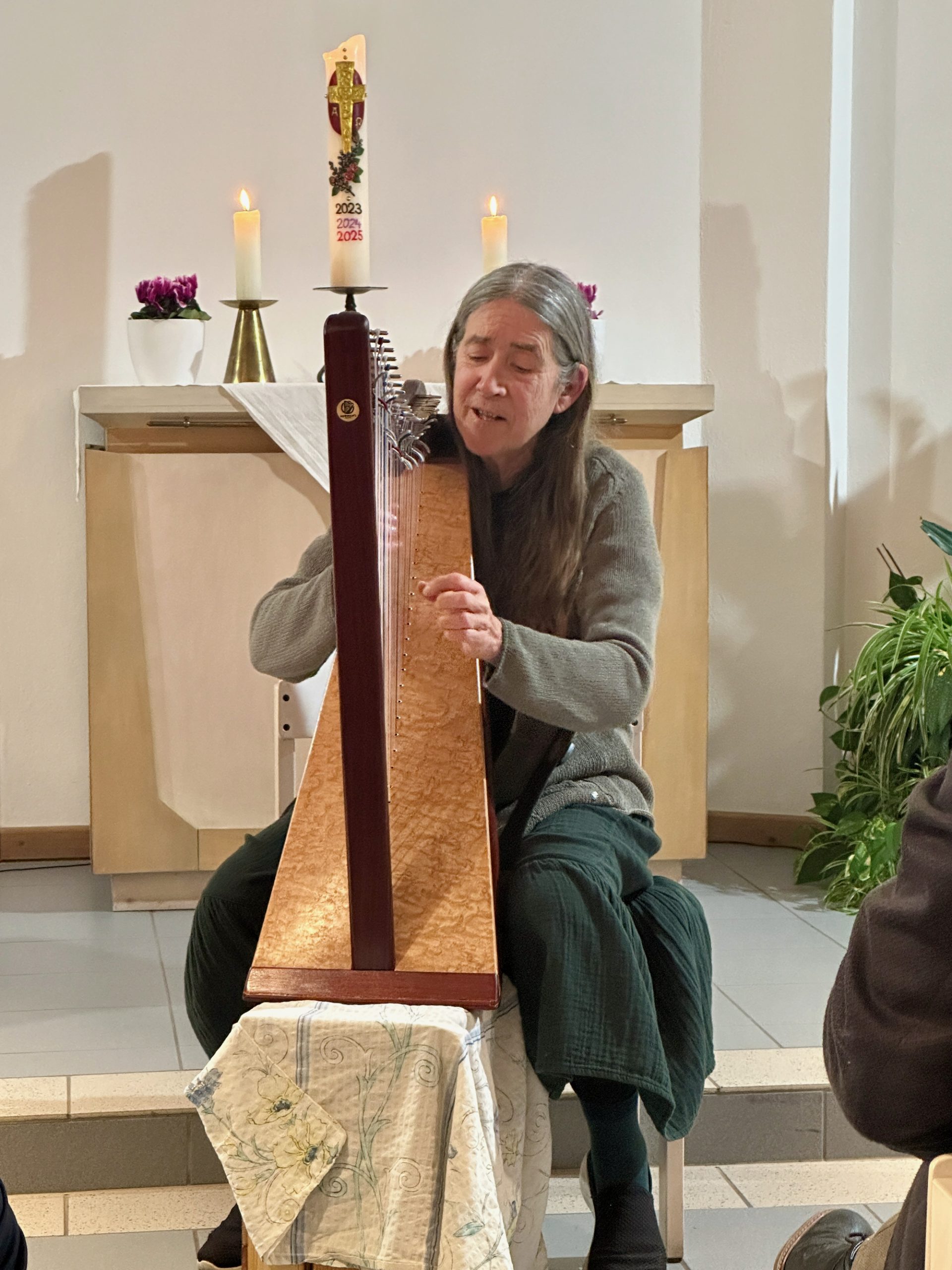 Ein besonderer Akzent wurde zudem durch eine Harfenspielerin aus Texas gesetzt, die Suse Chmell mitgebracht hatte und die mit ihrem Spiel eindrucksvoll an David, den Harfenspieler, erinnerte und damit eine biblische Verbindung zwischen Musik, Glauben und Verkündigung herstellte.